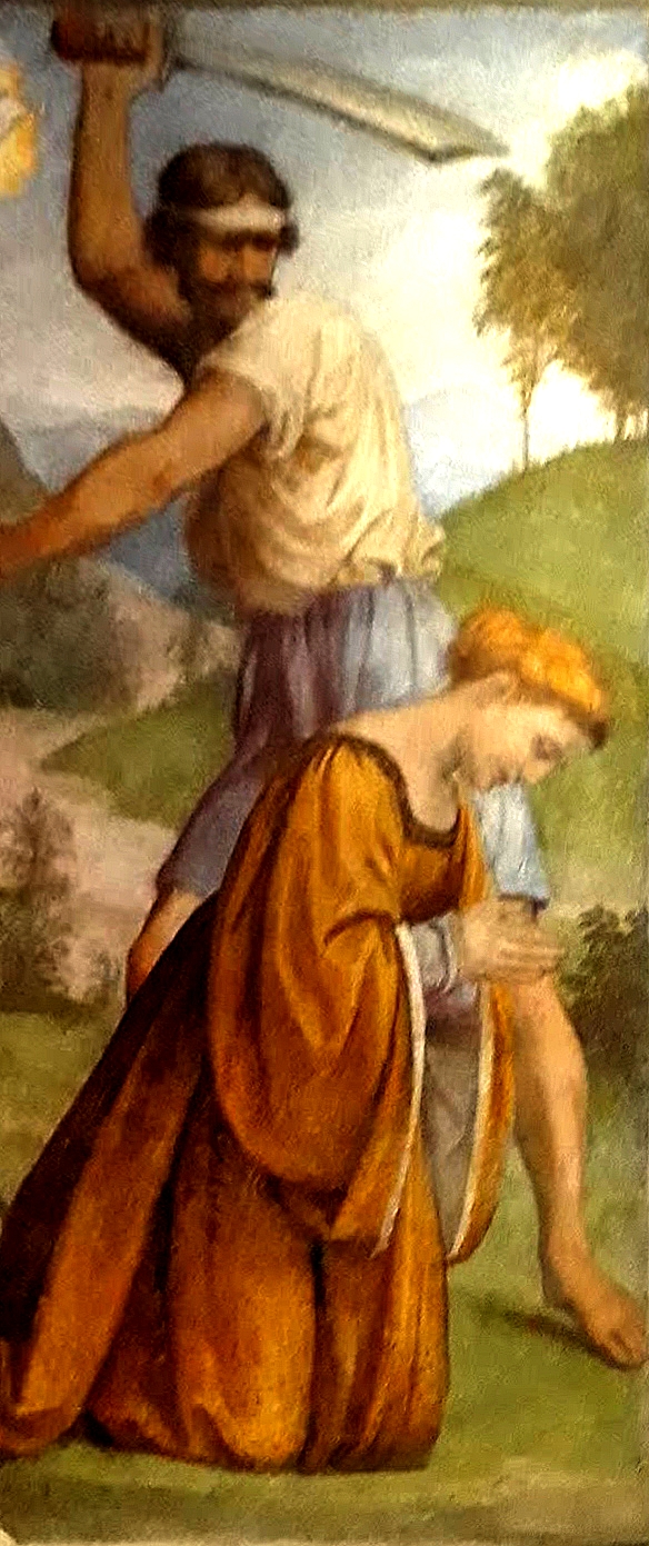 Sainte Catherine sous les traits de Bianca Maria, dans une image inspirée probablement, selon des commentaires contemporains, à une nouvelle de Matteo Bandello. Bernardino Luini, Affreschi di santa Caterina, Milano, San Maurizio al Monastero Maggiore, Cappella Besozzi, ca. 1529 (photo collection privée). |