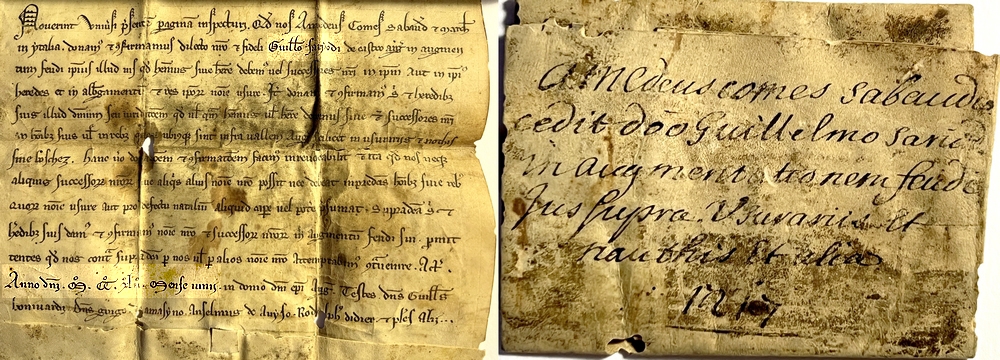 Augmentation de fief donnée par le duc de Savoie, Thomas Ier, à Guillaume Sarriod et ses héritiers, en 1217 (Collection privée).