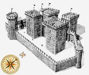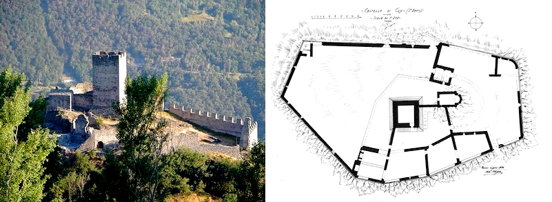 Ce plan nous renvoie aux plans des nombreux châteaux dits "primitifs" ou de montagne, présents en Val d'Aoste, comme celui de Cly, ci dessous, ou celui de Graines, de Châtel-Argent ou encore de Saint-Germain.