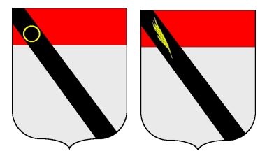 Fresques survivantes aux travaux du XVIIIe siècle, en mauvais état, situées dans les combles au dessus du grand salon, et datant de la période 1502-1517 (date du mariage entre Philibert de Challant et Louise d'Aarberg-Vallengin, et date de décès de Philibert). On reconnait, un peu difficilement, sur le bateau de gauche comme dans l'encadré central, les armoiries mi-parties de Philibert de Challant et de Claude d'Aarberg-Vallengin, père de Louise, aux chevrons caractéristiques (Photo collection privée)