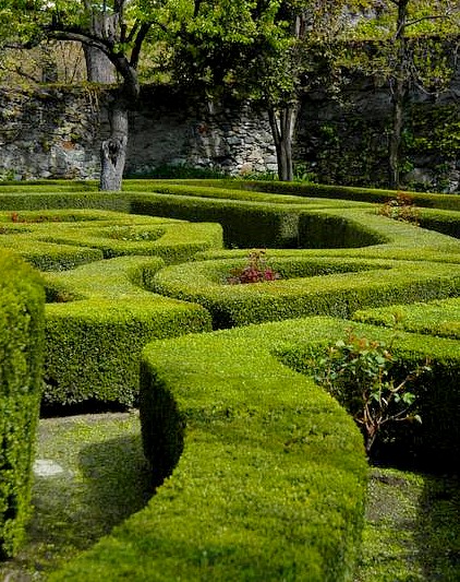 Château de Châtillon. Buis et éléments du décor du jardin d'agrément.
